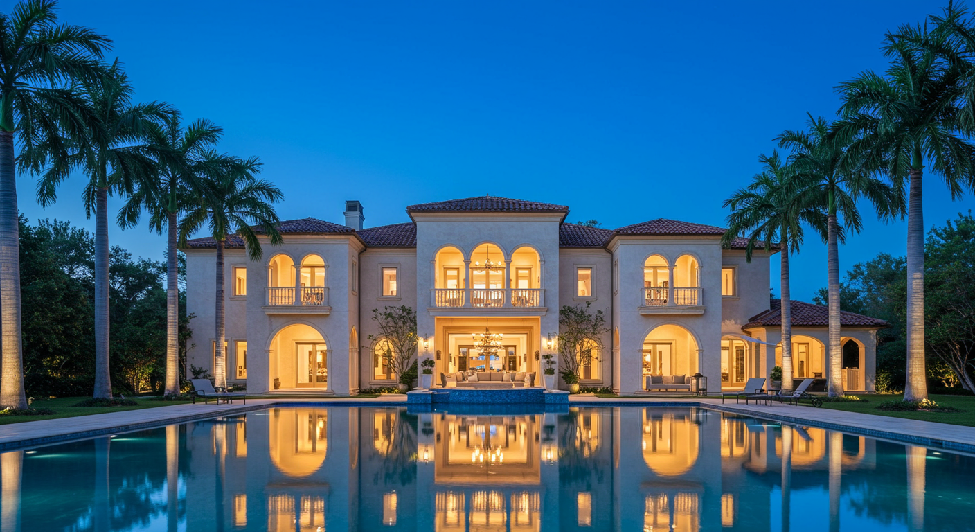 Built by Monogram Builders, this Mediterranean villa is the jewel of Tampa Bay’s Sunset Park. Welcoming Royal Palms and a stone-paved drive lead to the regal entrance, inviting visitors to enjoy an unmatched Gulf Coast lifestyle. Stunning sun-lit interiors of over 10,000 square feet harmonize with dynamically patterned wood floors, handcrafted archways, bespoke ceilings, Moravian star pendant lights and other rich details. Multiple entertaining spaces impress, from the exquisite sitting room with fireplace to the showstopping entertainment lounge/game room and the home’s centerpiece living space featuring a dramatic folding panoramic door opening to the outdoors and the sprawling state-of-the-art kitchen. There are a total of eight ensuite bedrooms, including the dazzling owner’s suite with a gorgeous spa bath and a bespoke dressing room complete with a hidden entrance to the gym! A second-floor exclusive family escape opens to a terrace for admiring views. In the evening, the outdoor space transforms into a moonlit oasis for enviable parties with a pool, flaming fire bowls and a private covered dock.