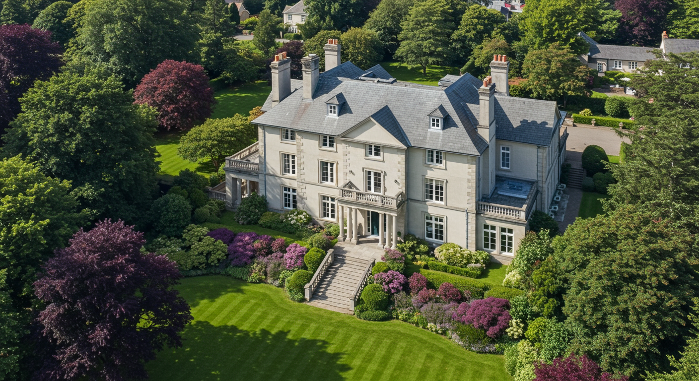 Prominently sited on approximately two verdant acres in lower Bel Air and set behind a gated entrance with 400 feet of street frontage, this majestic white-brick Georgian overlooks sweeping treetop views and the scenic fairways of the Bel Air Country Clubs. The property matches its 17,000 square-foot scale with a fabulous list of amenities: eight bedrooms, a theater, card room, libary, gym, 13 bathrooms and a two-bedroom, 2,000-square-foot guest house. The impressive detail, both inside and out, casts the home as one of L.A.’s finest with high ceilings, groin archways, limestone and walnut hardwood floors, eight fireplaces, a slate roof and park-like grounds meticulously designed with specimen trees, rose gardens and a 70-foot swimmer’s pool and spa.