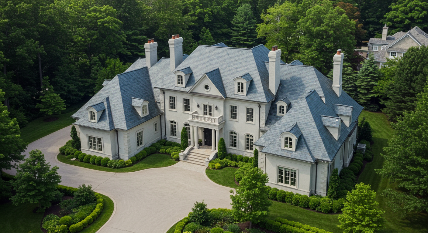 Beautifully sited within these 27 magnificent acres lies the next great Greenwich estate: Topping Hill. A collaboration between architect Ralph Mackin, builder Scott Hobbs, AD100 designer Alexa Hampton (daughter of legendary interior designer Mark Hampton), landscape architect Janice Parker and Stephen Scanniello, who designed the rose gardens, brought the exquisite 14,887-square-foot French Normandy-style residence to stunning completion in 2020. The estate recently garnered the attention of Forbes and other media outlets for its rare assemblage of acreage, new construction, beautiful and private grounds and abundant outdoor recreation.