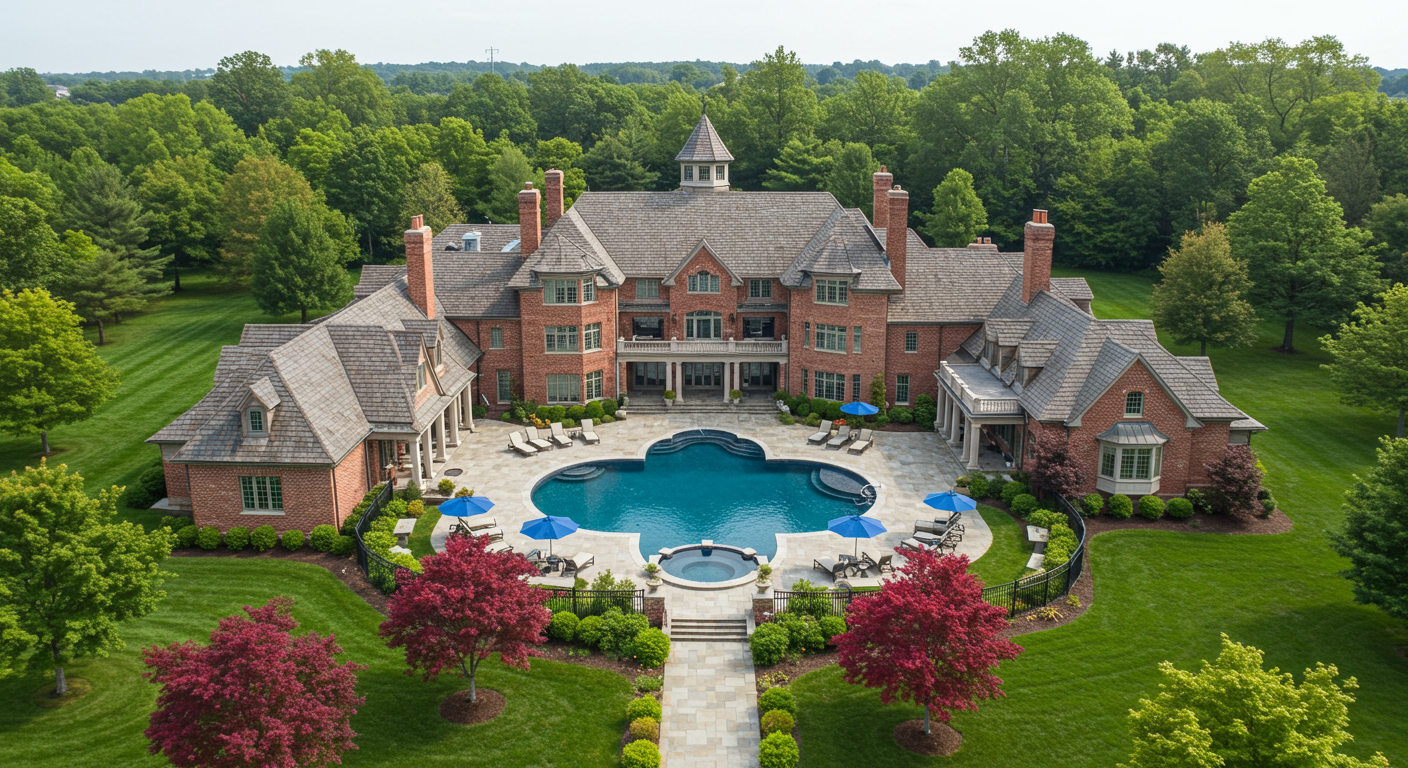 The historic New Jersey setting and gated ambiance of this legacy mansion designed by Beer & Coleman recall the opulent lifestyle of the Gilded Age. Exquisite details impress throughout. Perfect for multiple generations of family, the residence offers eight separate bedrooms, where everyone can have privacy. The floorplan has been thoughtfully planned for today’s living while combining the character and elegance of yesteryear. A superb kitchen provides a comfortable gathering place with the top-of-the-line accouterments that every chef desires. A banquet-size dining room, touched with a marble fireplace surround and Venetian plaster ceiling, balances formality and scale. A conservatory plus an office with custom finishes complete the main floor. On the second floor, double accommodations exist for the luxurious primary bedroom suite. Entertainment rooms include a spa, exercise room, billiards room, theater, pub and wine cellar. Beyond, beautifully landscaped grounds entice with terraces, a covered seating area, pool, pool house, greenhouse and fountains — a magical location for outdoor entertaining.