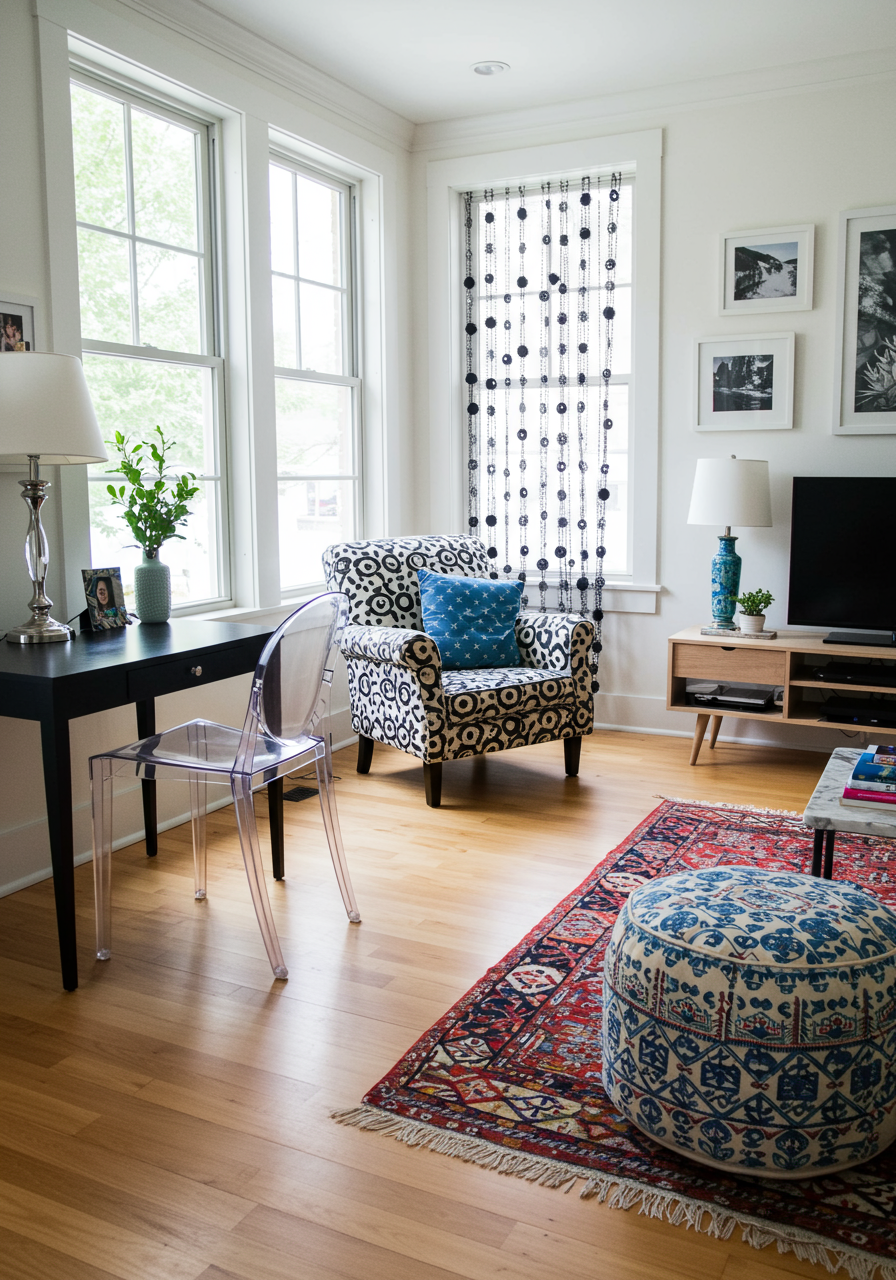 Decorwise, I went for an upscale boutique hotel aesthetic, incorporating many high-end touches. For example, I displayed expensive art on the walls, and splurged on sumptuous linens, blankets, rugs, and poufs. I even scattered Jonathan Adler vases and John Derian paperweights throughout the place.