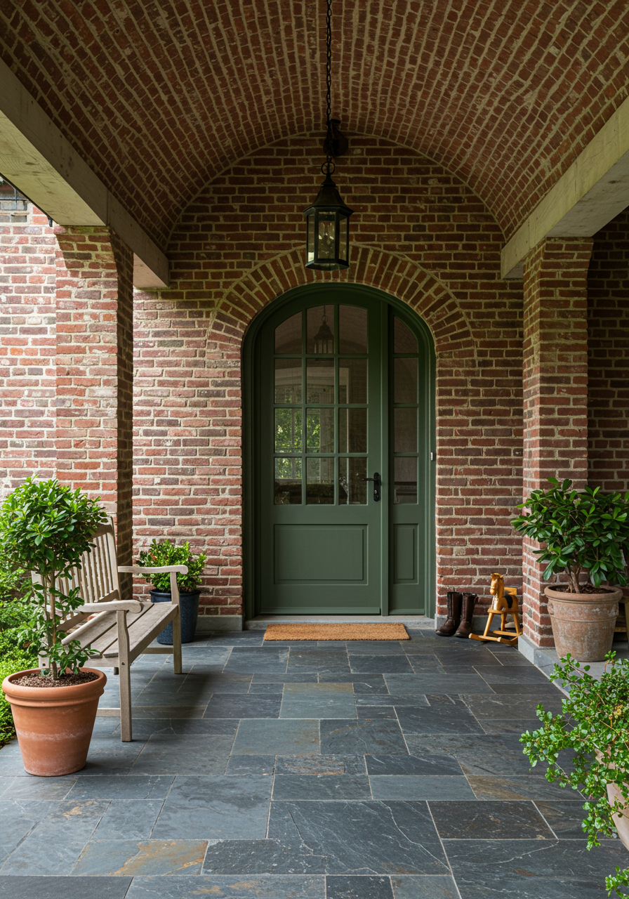 If you have an expansive front porch, there might be room for a fully furnished seating area. But even with a smaller front entrance, it’s usually possible to add a single small stool, chair or bench that serves multiple functions.